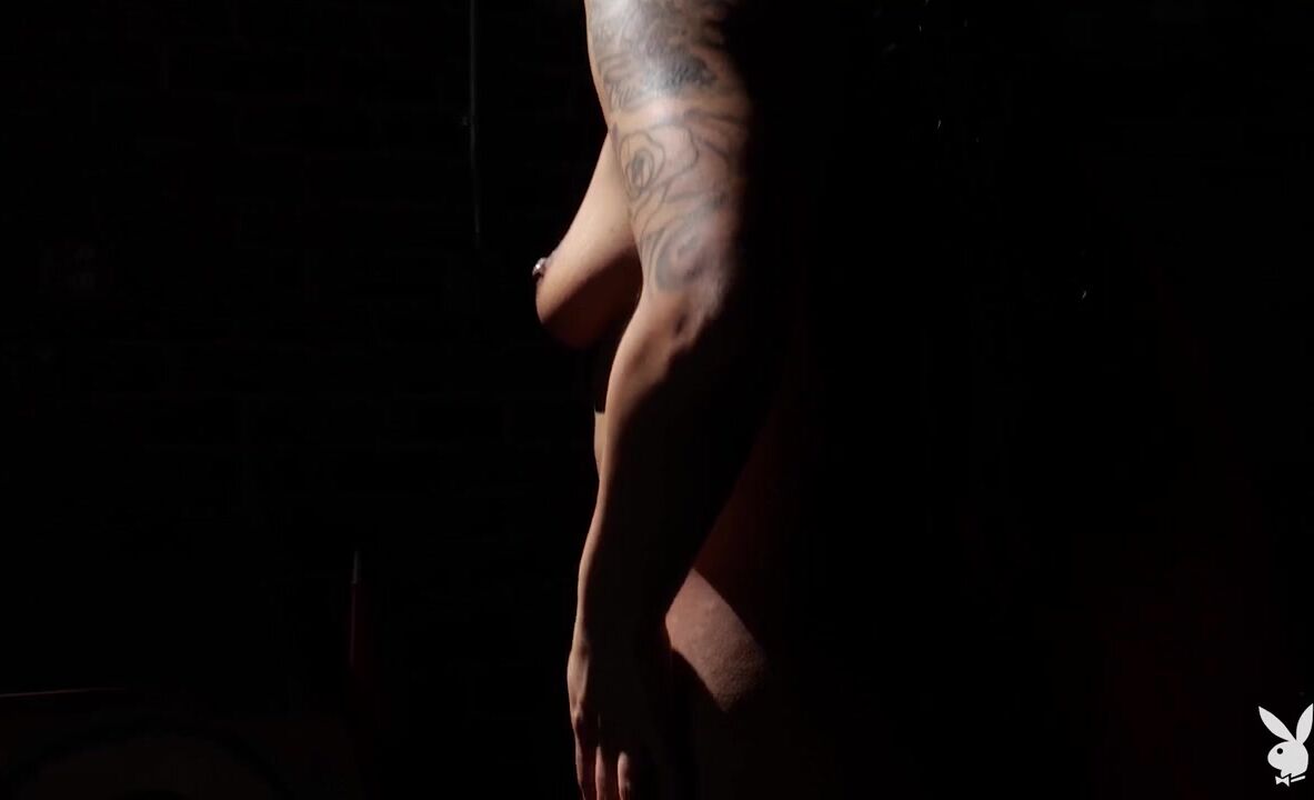 Сексуальная байкерша Лондон Шанель в гаражной эротической фотосессии