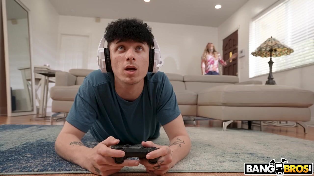Горячая мачеха Стефани Лав сексом отвлекает пасынка от игры на приставке