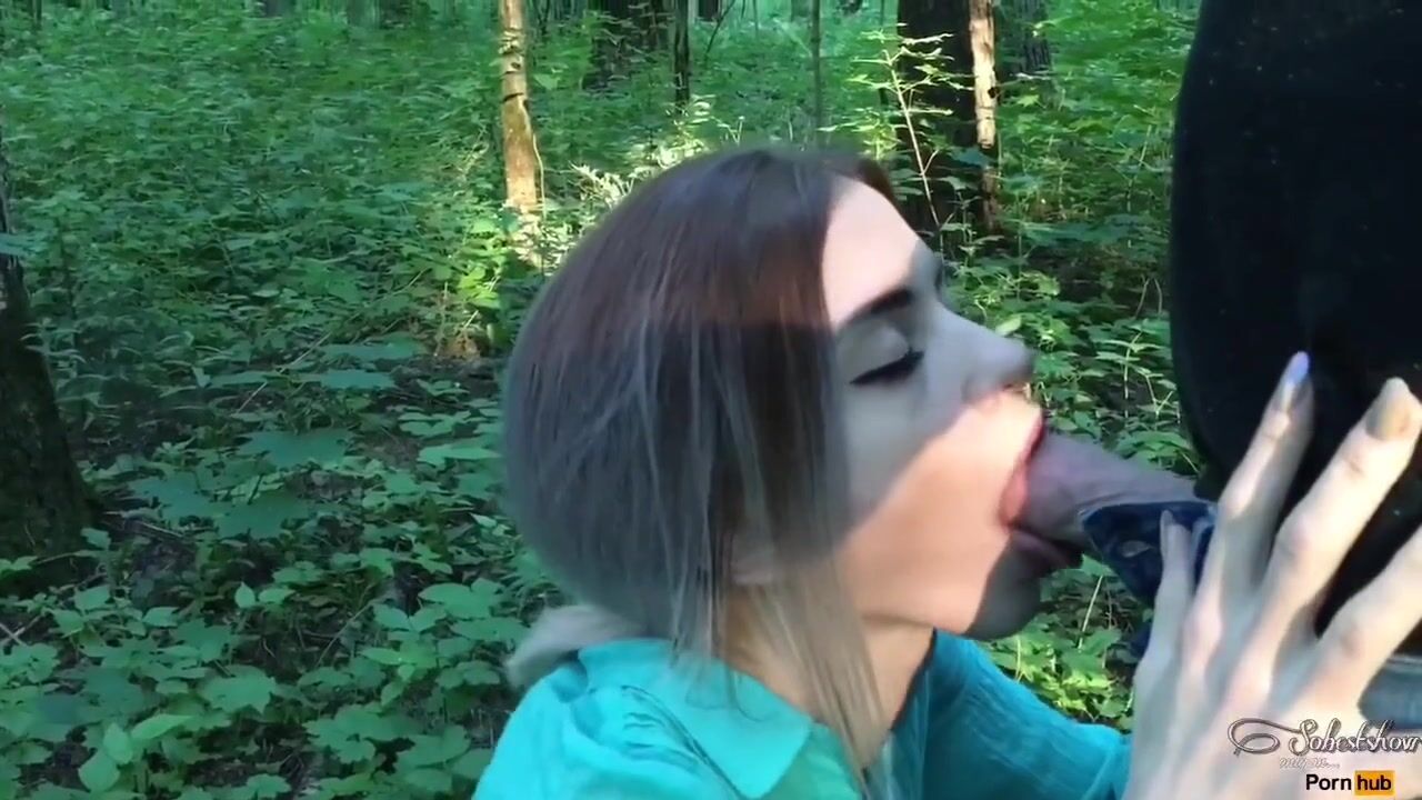 Няшная русская сосалка выебана в горло на корточках в лесу